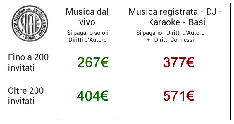 Ci siamo fatti spiegare bene queste differenze dagli esperti SIAE telefonando agli uffici di Roma, potete chiamare tranquillamente per maggiori informazioni il numero 06.59905200.